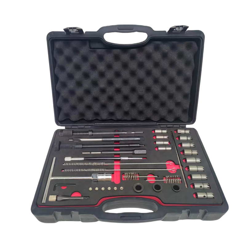Zestaw frezów 17 szt do gniazd wtryskiwaczy ze szczotkami, ściągacz