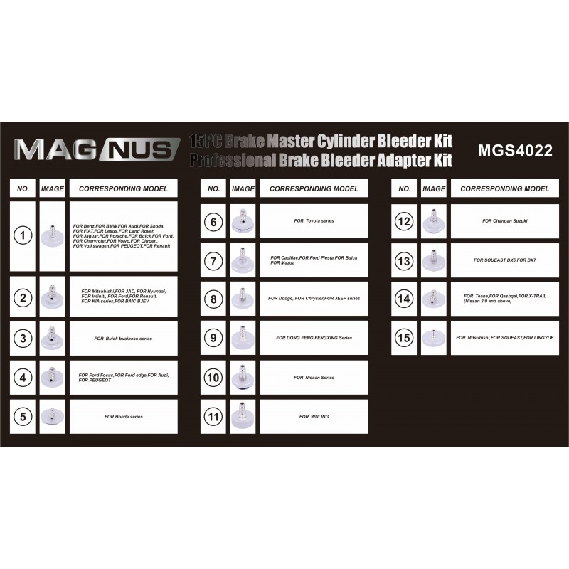 Wyposażony w złączki, które łączy jeden koniec z adapterem, a drugi koniec wąż do szybkozłączem, odpowiednie dla większości urządzeń do wymianu płynu hamulcowego